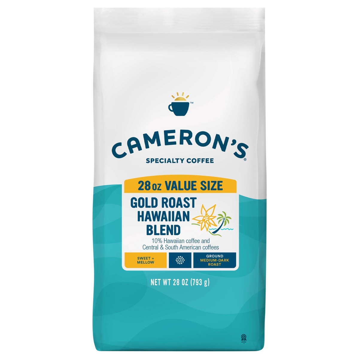 Cameron's Coffee Ground Bag, Gold Roast Hawaiian Blend, 28oz. Brew a cup of gold with the bright, fruity sweetness in this enticing blend of Central & South American and Hawaiian beans. Cameron's uses…