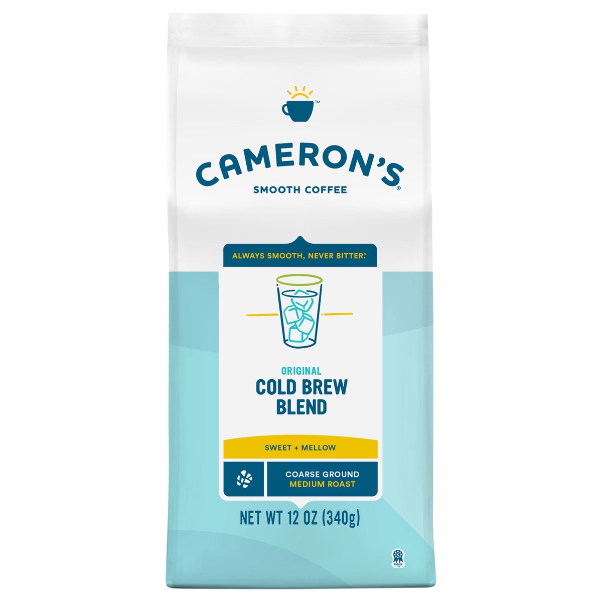 Cameron's Coffee Roasted Ground Coffee Bag, Cold Brew Blend, 12oz. Coarse ground and ready to cold brew! This creamy & mellow coffee has hints of milk chocolate and finishes smooth, perfect for a summ…