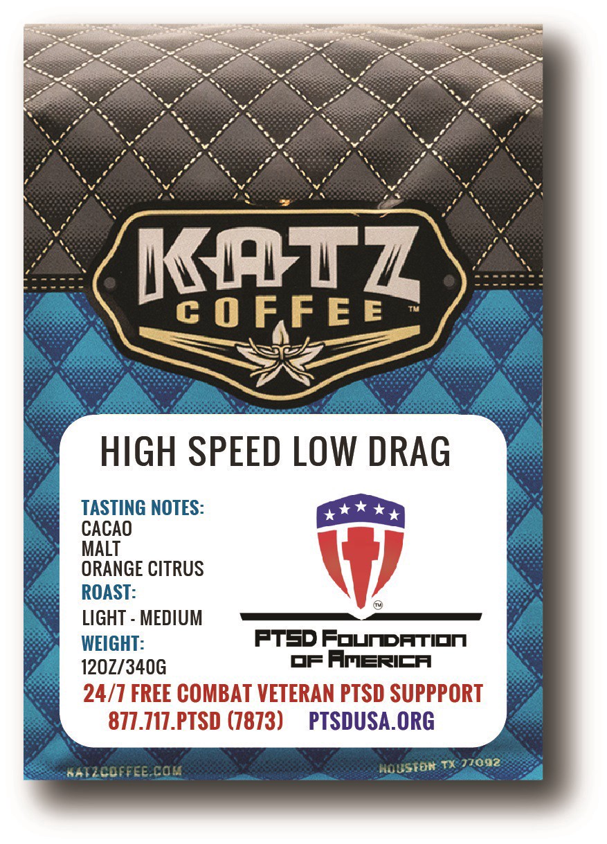 Katz Camp Hope Foundation High Speed Low Drag Blend Coffee has tasting notes of cacao, malt, and orange citrus. The roast is medium.
