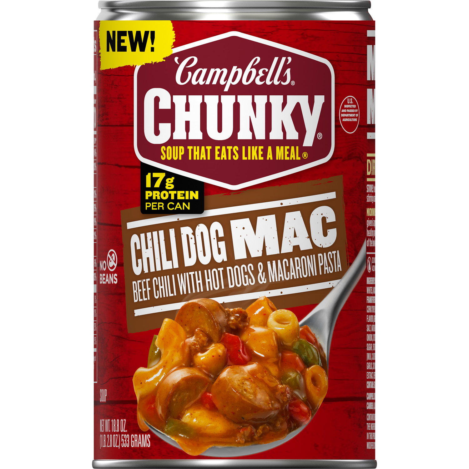 Campbells® Chunky® Chili Dog Mac isnt just tastyit's made to work as hard as you do. With big flavors and bold ingredients, Campbell's® Chunky® canned soup is capable of fueling a hearty appetite. Thi…