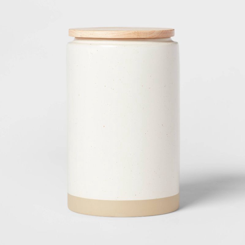 From flour to cereal and more, the Camwood Collection Large Stoneware Canister with Wood Lid from Threshold™ will help keep your food contents safe and nicely covered. This large canister features all…