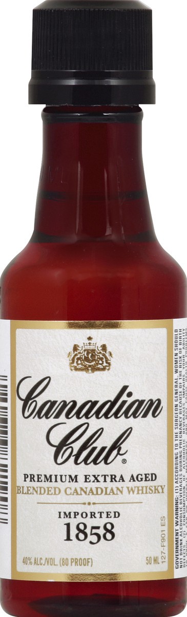 Premium extra aged. Imported 1858. 40% alc./vol. (80 proof). Imported and bottled by Canadian Club Import Company, Deerfield, IL, USA.