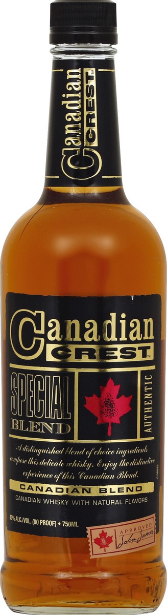 Canadian whisky with natural flavors. A distinguished blend of choice ingredients compose this delicate whisky. Enjoy the distinctive experience of this Canadian Blend. Special blend. Authentic. Appro…