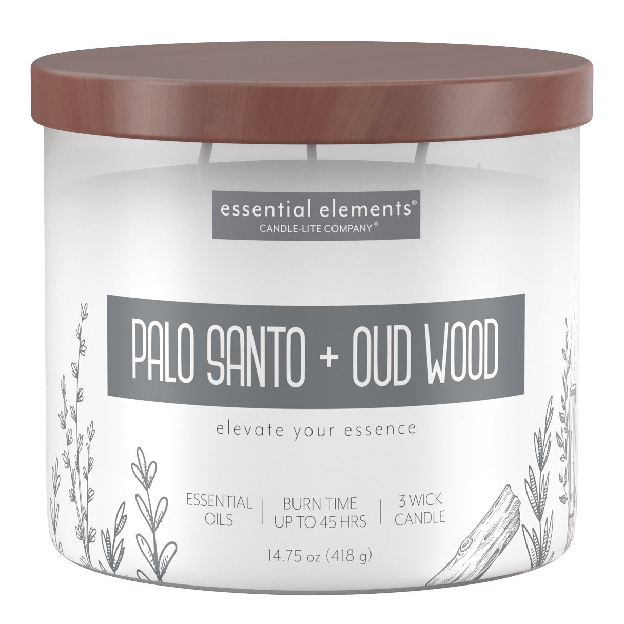 Candle-Lite Palo Santo + Oud Wood Scented 3 Wick Candle, 14.75 oz
