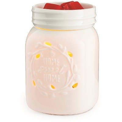 Mason Jar Illumination Fragrance Warmer. Inspired by the famous home canning jars, this porcelain fragrance warmer glows when lit with the phrase "home sweet home." Add your favorite scented wax melts…