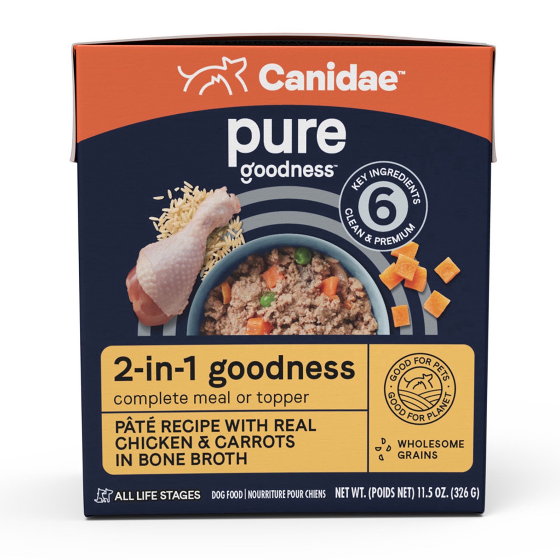 slide 1 of 1, Canidae Pure 2-in-1 Goodness Pate with Real Chicken & Carrots in Bone Broth Wet Dog Food 11.5 oz., 1 ct