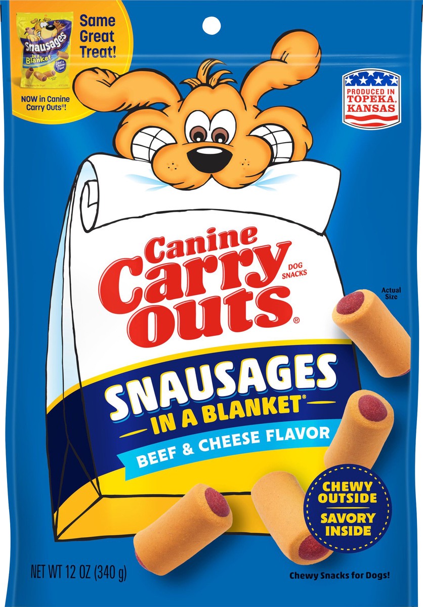 Perfect for That Snack Attack Just like the rest of us, your dog craves snacks, too. So be a pal and keep some Canine Carry Outs Snausages in a Blanket dog snacks on hand. These delicious dog chews fe…