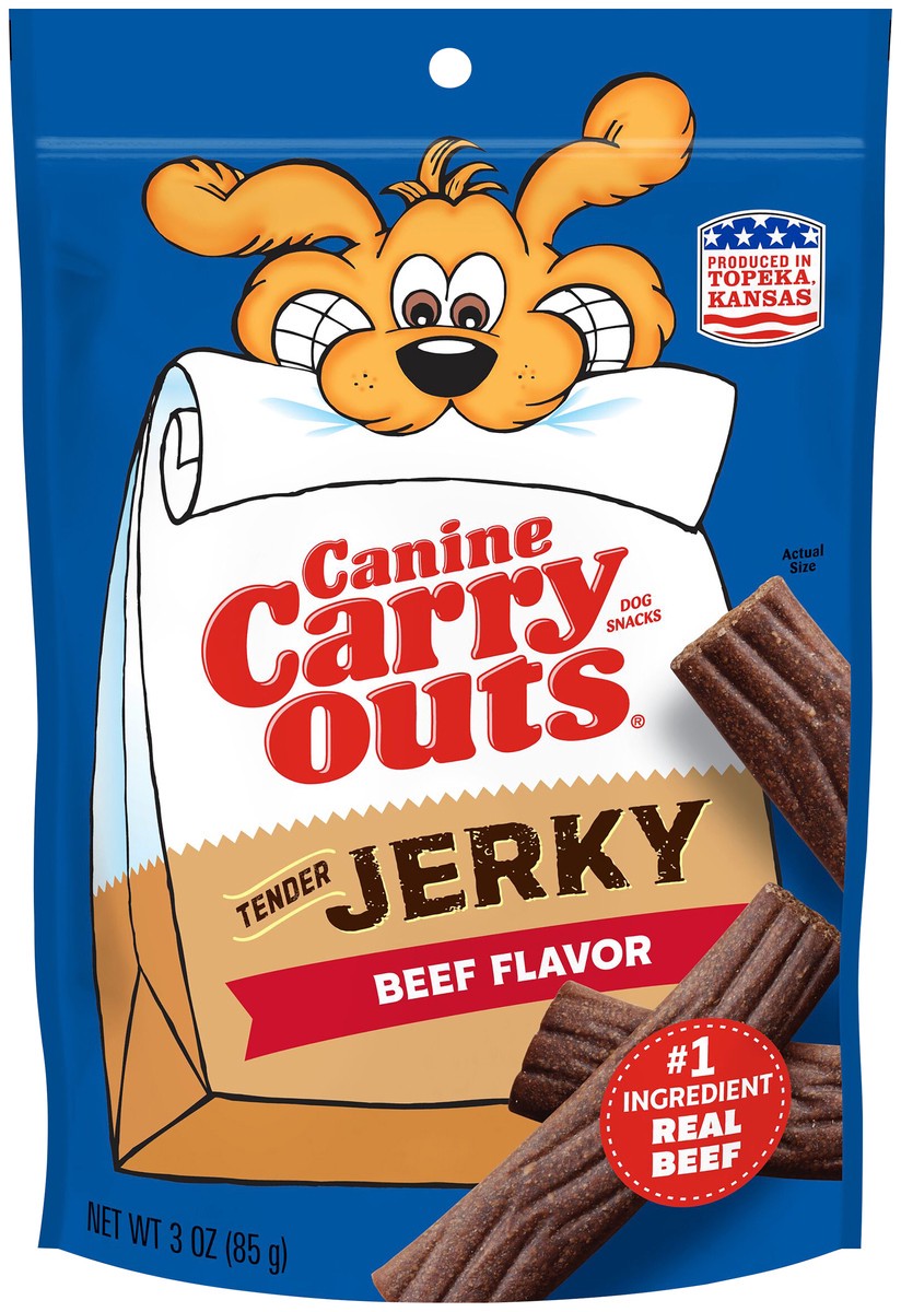 Real Beefy Deliciousness Looking for a snack your dog is sure to love? Watch your furry pal perk up when you open a bag of Canine Carry Outs Tender Jerky dog snacks. These yummy, chewy dog treats are …