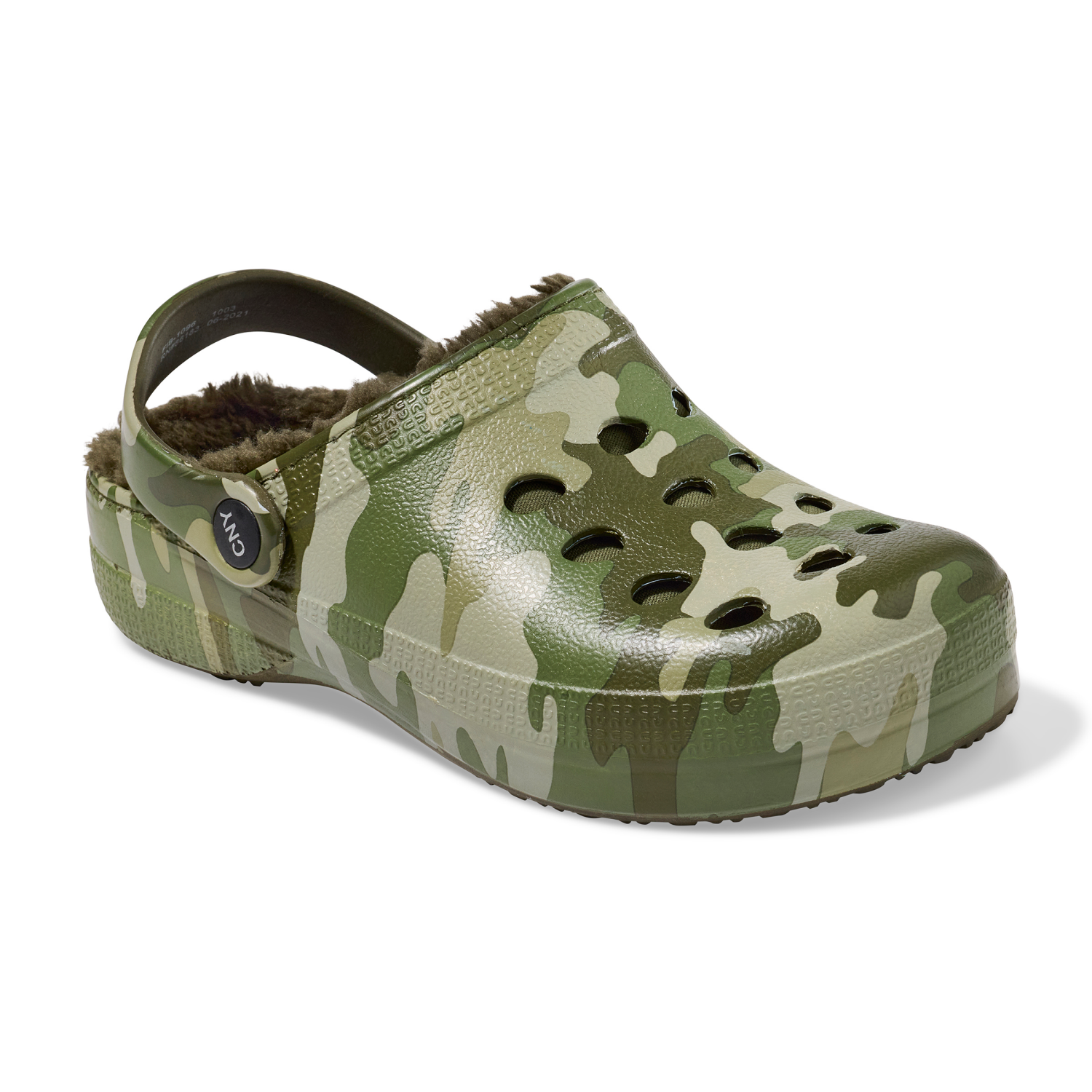 Boys fur clogs with camo faux berber lining making the shoe extra cozy for the cold weather season.