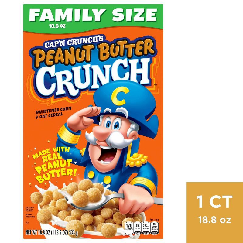- Includes 1 (18.8 oz.) family size box of Cap'N Crunch's Peanut Butter Crunch Cereal
