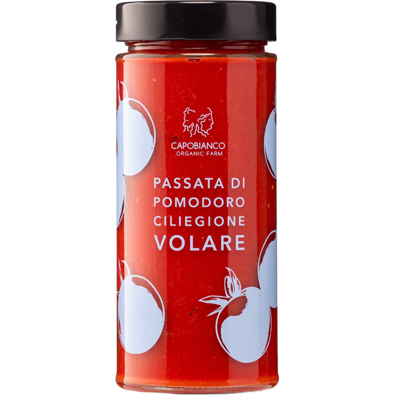 Organic cherry tomatoes harvested by hand in full ripeness, blanched for a few minutes in boiling water, pureed and packaged in glass jars. Called “Ciliegione” because they are larger than the usual c…