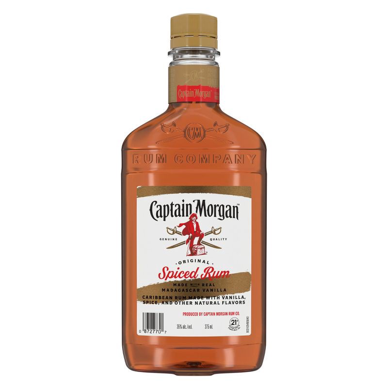 - Includes one 375 mL bottle of Captain Morgan Spiced Rum70 proofPerfect as a gift or for indulgent moments at home or out with friendsLess than 1 gram of sugar* and only 86 calories per serve* (*Per 1.5 oz. serving- Average Analysis: Calories 86, Carbohydrates .5g, Fat 0g, Protein 0g)Made with Caribbean rum, natural flavors and spice, with notes of cinnamon, clove, and spiceSecret blend of fine Caribbean rum, distilled on the island of St. CroixMade with Caribbean rum, natural flavors and spice, with notes of cinnamon, clove, and spiceMade with Caribbean rum, natural flavors and spice, with notes of cinnamon, clove, and spice