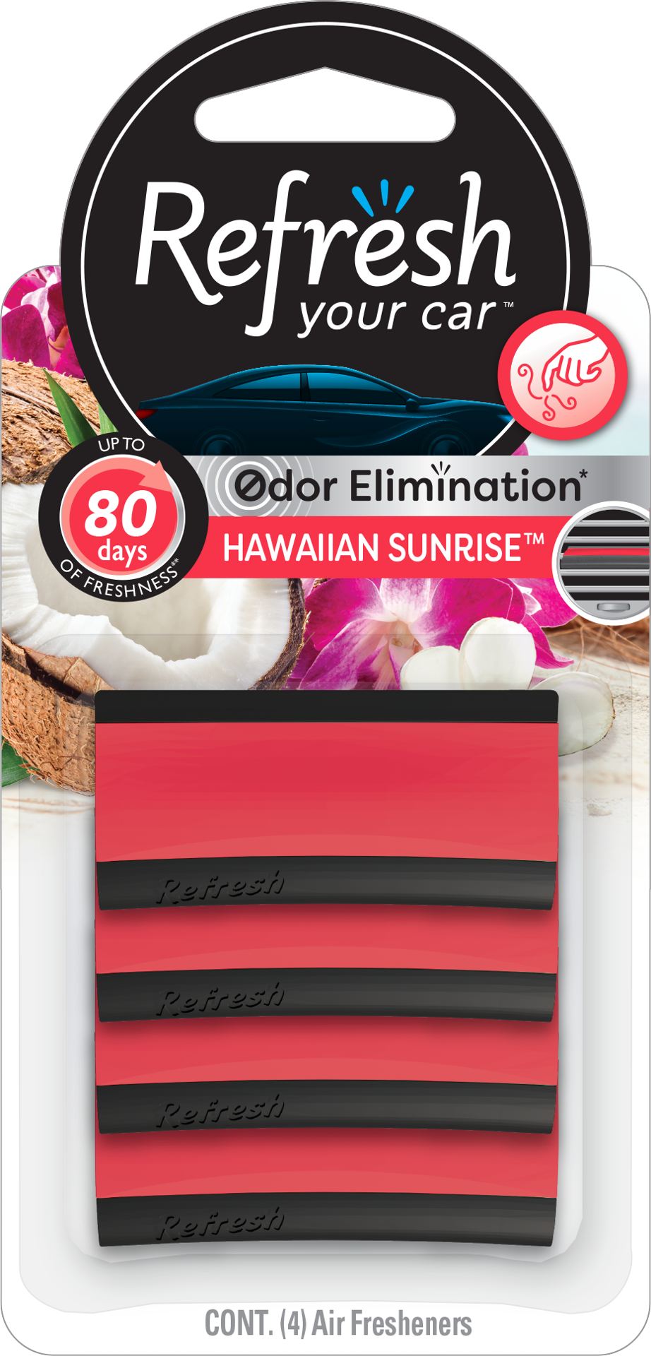 Refresh Your Car! Hawaiian Sunrise Contour Vent Stick Car Air Freshener dispenses a refreshing fragrance to overtake car odors. uses Odor Elimination Technology* to naturally purify the air of smoke, …