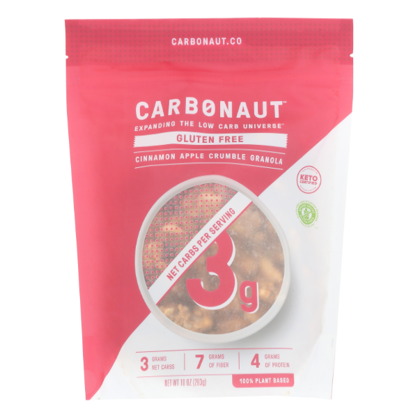 Carbonaut’s Cinnamon Apple Crumble Gluten Free Granola boasts a satisfyingly snackable low net carb secret—a payload of almonds, sunflower seeds, cashews, coconut, and pecans paired with aromatic cinn…