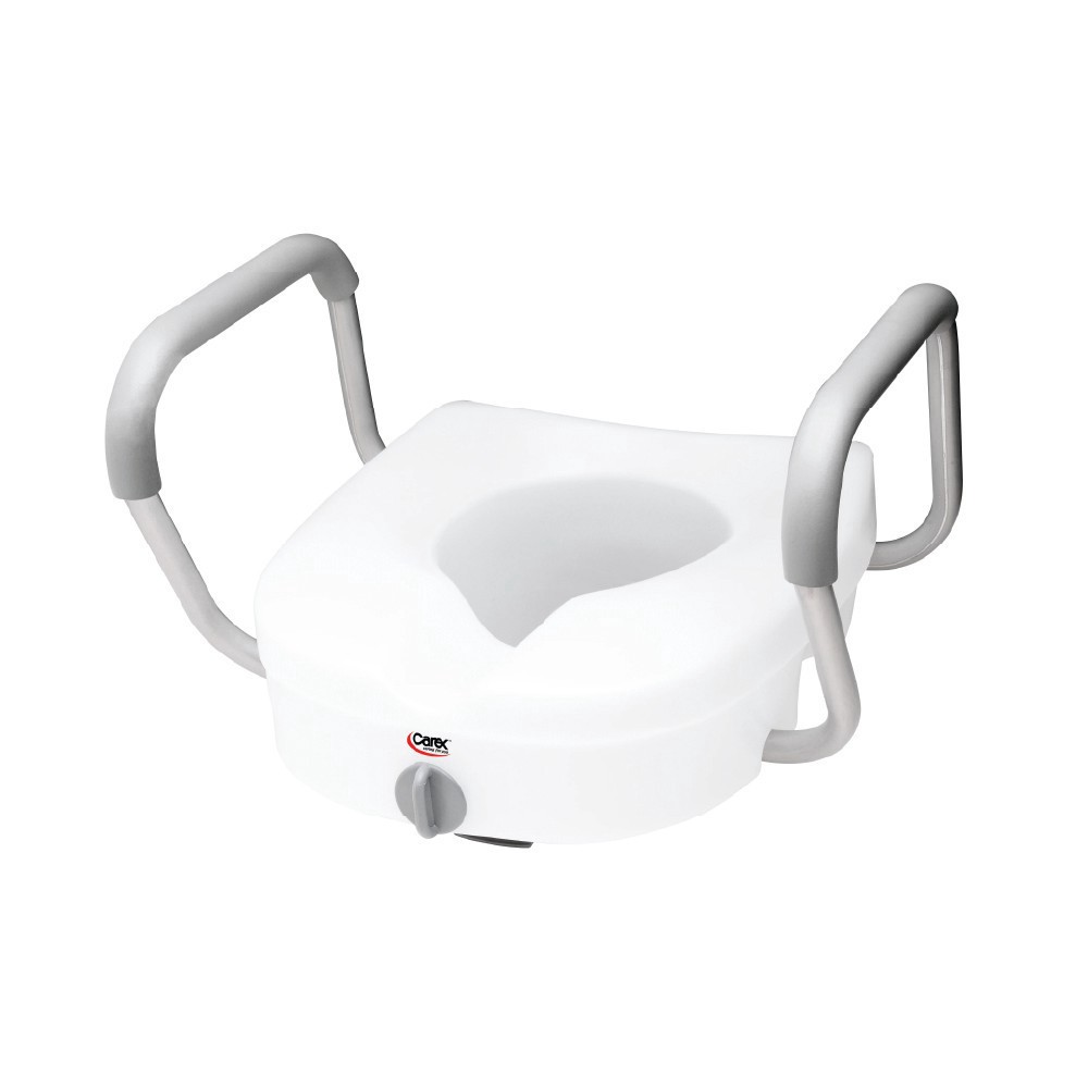 The Carex EZ lock raised toilet seat with adjustable arms assists those with bending or sitting difficulties by adding 5 in. of height to the toilet seat. The easy-to-use locking mechanism secures theā¦