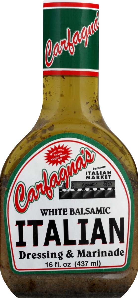White Balsamic Vinegar, Olive Oil, Non-GMO Cane Sugar, Salt, Garlic, Black Pepper, Red Bell Pepper, Italian Spices.