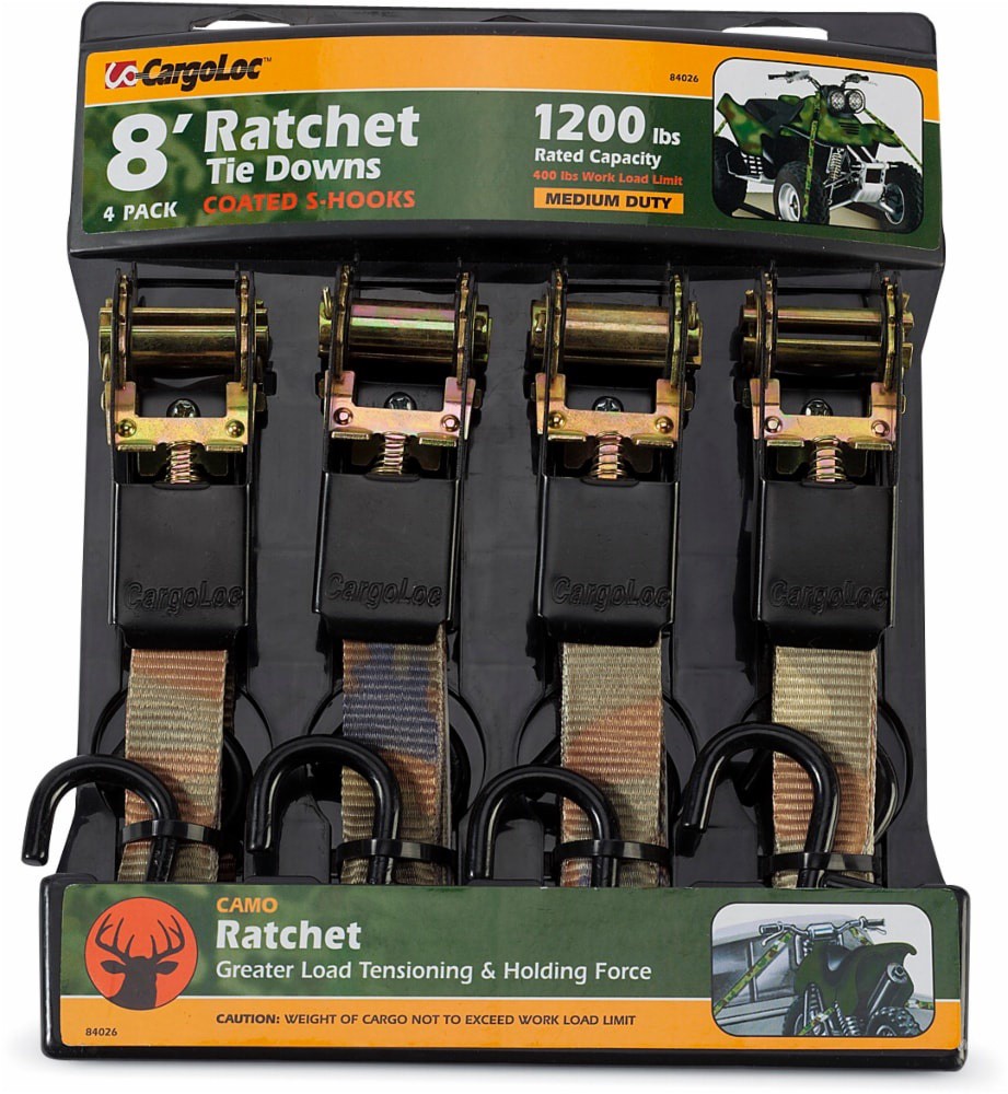 slide 1 of 1, Cargoloc Medium Duty 8 Foot Ratchet Tie Downs - Camo, 4 ct