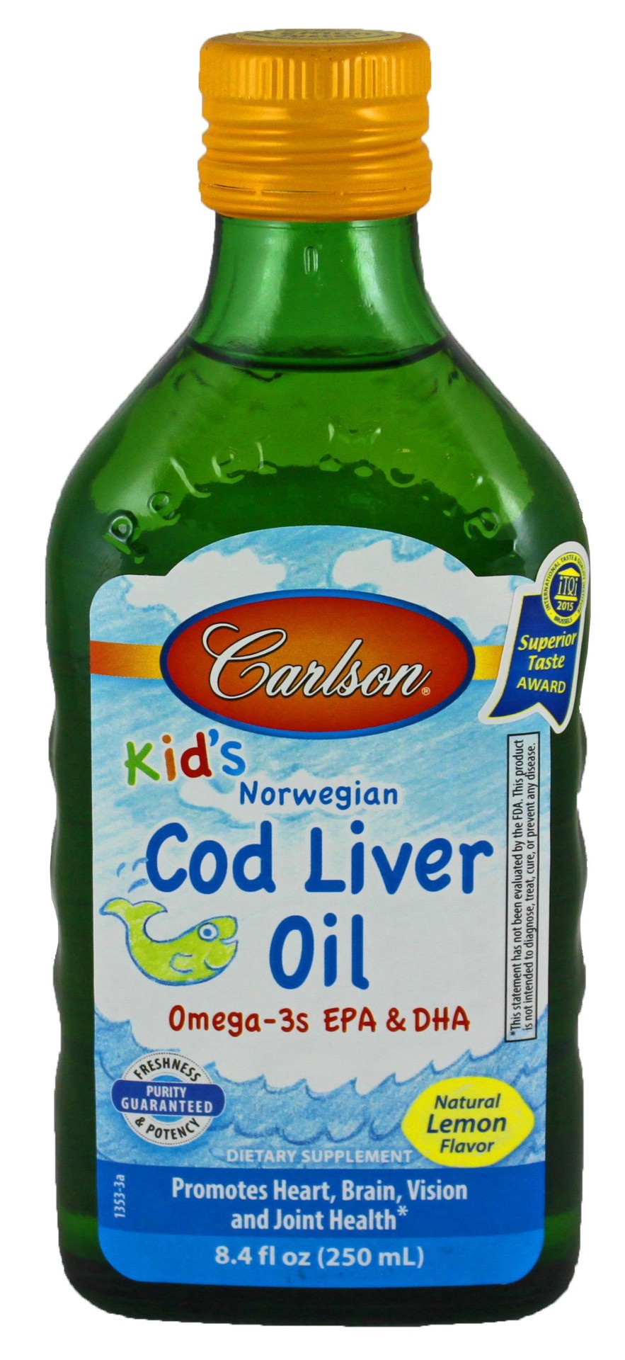 Carlson for Kids Norwegian Cod Liver Oil has received numerous awards for its taste and quality. A single 1/2 teaspoonful provides 550 mg of omega-3s, including EPA and DHA, which support heart, brain…
