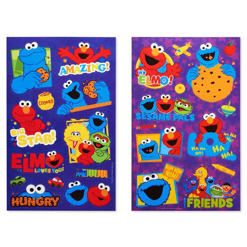 - Sesame Street Elmo sticker pad sheets are printed on high gloss paper and include two separate designs. Design features cute Elmo and Sesame Street character stickers with blue and purple accents. Stickers range in size.