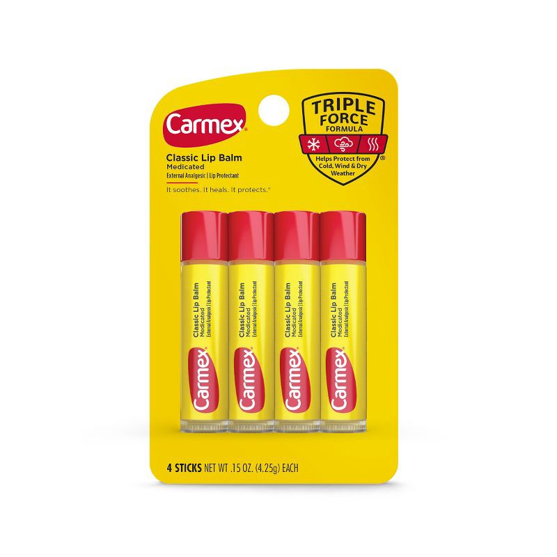 - 1 Pack of 4 Carmex Medicated Lip Balm Sticks (0.15 oz each)