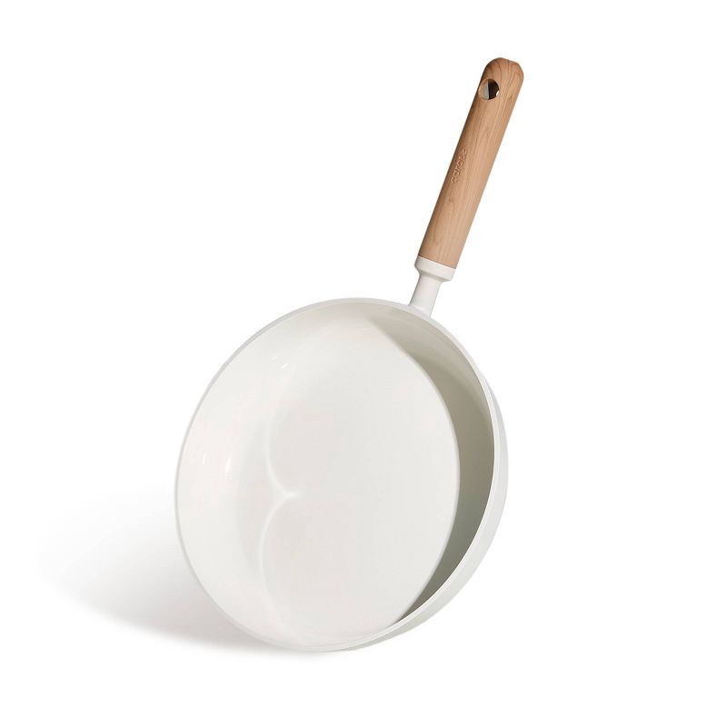 - 10" fry pan in cream white combines sleek design with versatility for most frying tasks.