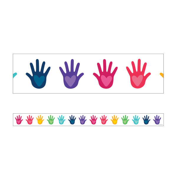 Carson Dellosa Education One World Hands With Hearts Straight Border Strips, 3" X 36", Multicolor, Pack Of 12 Border Strips