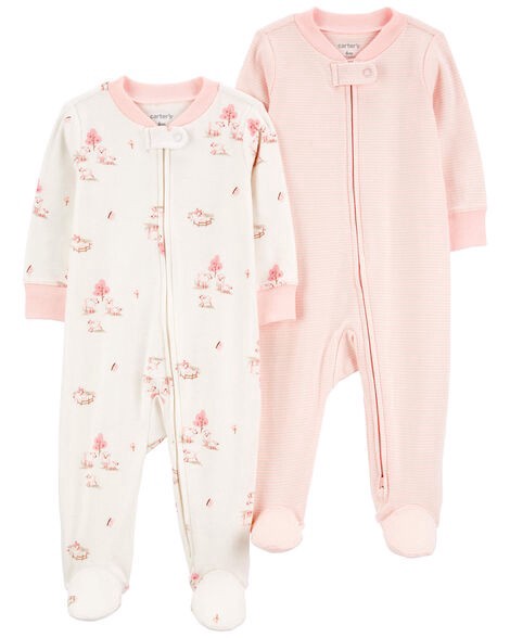 Carter's Baby 2-Pack 2-Way Zip Cotton Sleep & Plays Pink PRE
