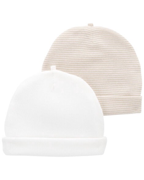 Carter's Baby 2-Pack Caps White/Brown NB