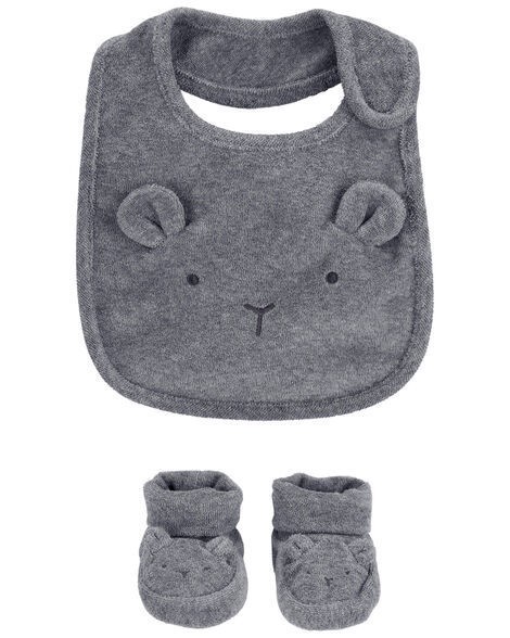 Carter's Baby 2-Piece Bib and Booties Set - Grey Grey NB-3M