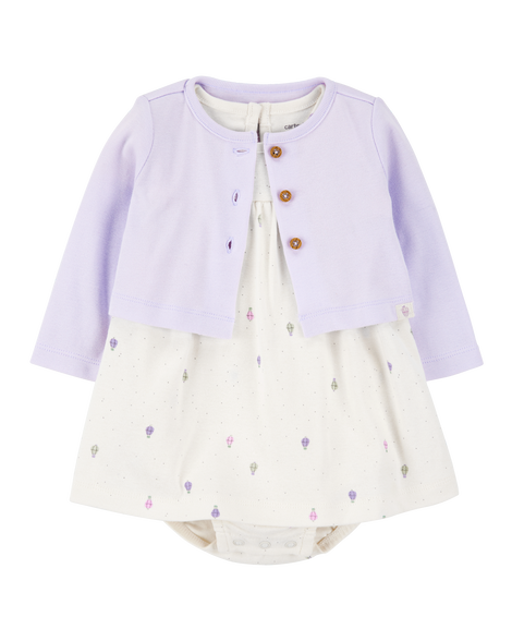 Carter's Baby 2-Piece Bodysuit Dress & Cardigan Set - Purple/White Purple/White 9M