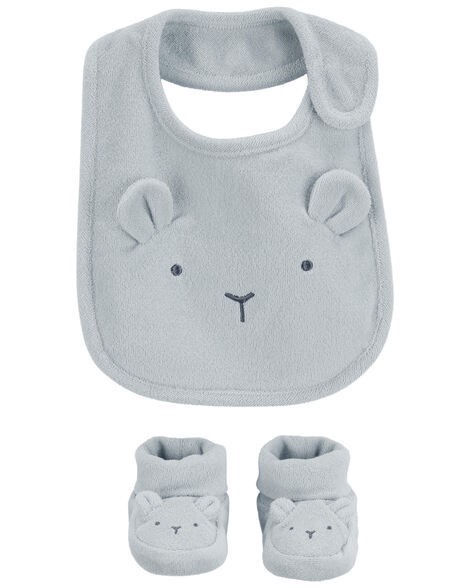 Carter's Baby 2-Piece Booties and Bib Set - Blue Grey NB-3M