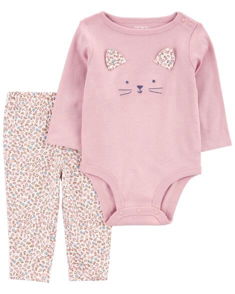 Carter's Baby 2-Piece Cat Bodysuit Pant Set Pink 12M