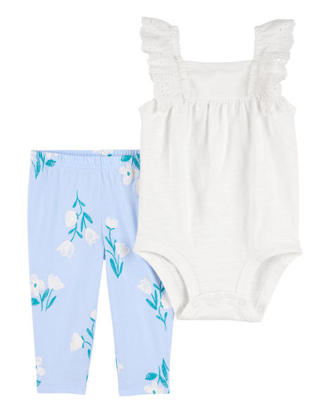 Carter's Baby 2-Piece Eyelet Flutter Bodysuit Pant Set White/Blue 12M