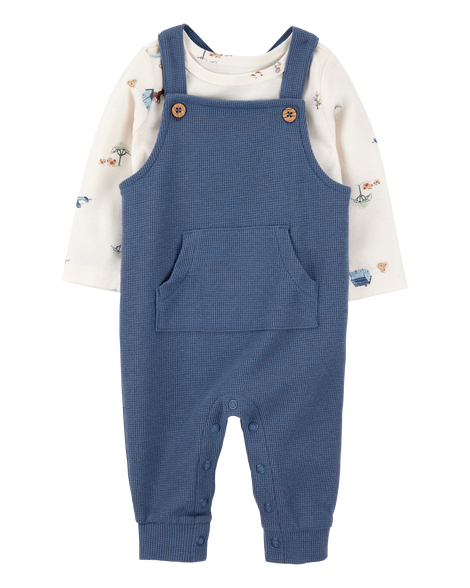 Carter's Baby 2-Piece Long-Sleeve Tee & Waffle Knit Coverall Set - Blue/White Blue/White NB