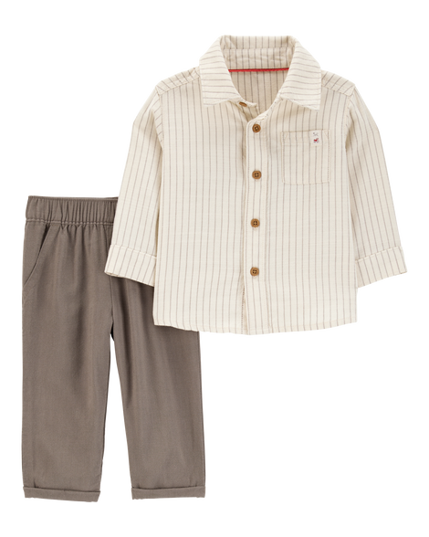 Carter's Baby 2-Piece Striped Button-Down Shirt & Pull-On Pant Set Ivory/Brown 9M
