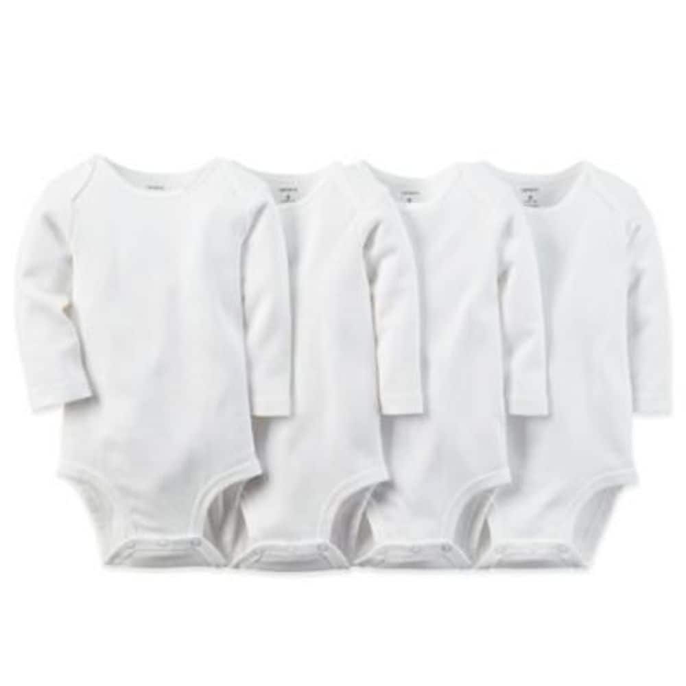 Crisp white bodysuits always come in handy, and this carters 4pack means you always have a clean one on hand. Bodysuits have long sleeves which is perfect for the chilly weather, and the bottom snaps …