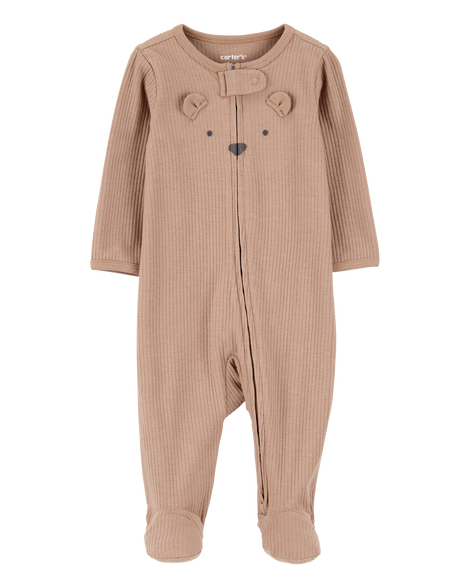 Carter's Baby Bear 2-Way Zip Ribbed Sleep & Play Pajamas - Brown Brown 9M