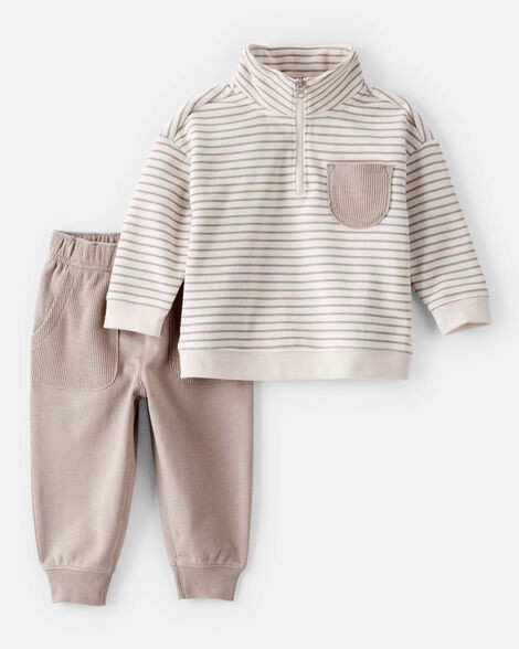Carter's Baby Boy 2-Piece Fleece Quarter-Zip & Jogger Set - Ivory Multi 18M