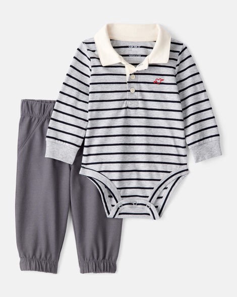 Carter's Baby Boy 2-Piece Striped Bodysuit & Pant Set - Grey Grey 18M