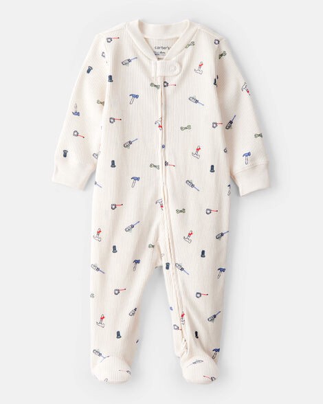 Carter's Baby Boy Construction Print Cotton Long-Sleeve Snug Fit Sleep & Play Pajamas - White Cream 6M