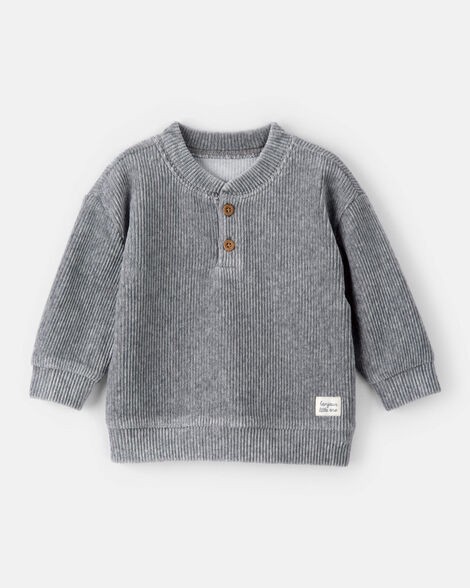 Carter's Baby Boy Ribbed Velour Pullover Sweatshirt - Grey Grey 24M