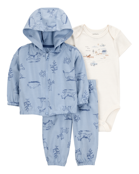 Carter's Baby Dog 3-Piece Cardigan Set - Blue/White Blue/White NB