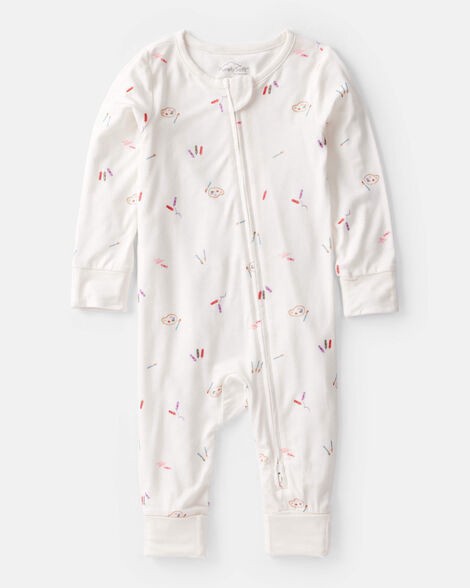 Carter's Baby Girl Art Print PurelySoft Sleep & Play Pajamas - White White 9M