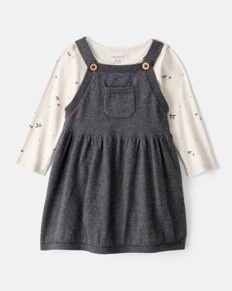 Carter's Baby Girl Bow Print Cotton Long-Sleeve Dress Set - Grey White/Grey 6M