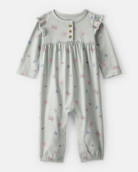 Carter's Baby Girl Butterfly Ruffle Cotton Long-Sleeve Jumpsuit - Green Green 24M