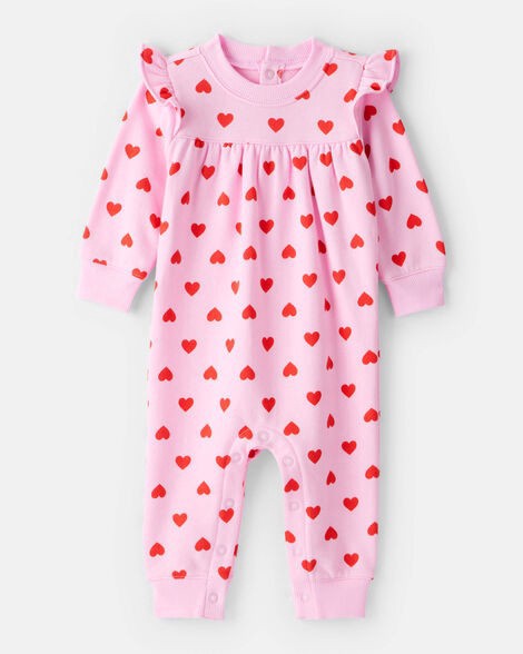 Carter's Baby Girl DayDream Fleece Heart Long-Sleeve Jumpsuit - Pink Pink 12M