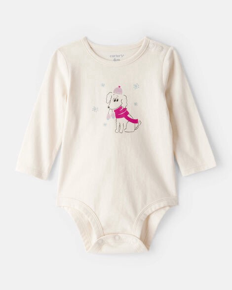 Carter's Baby Girl Dog Long-Sleeve Graphic Bodysuit - Cream Cream 12M