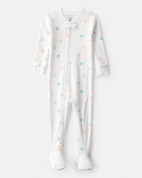 Carter's Baby Girl Heart Cotton Snug Fit 2-Way Zip Footie 1-Piece Pajamas - White White 12M
