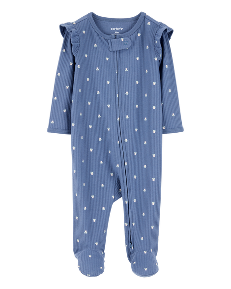 Carter's Baby Mini Floral 2-Way Zip Ribbed Sleep & Play Pajamas - Blue Blue PRE