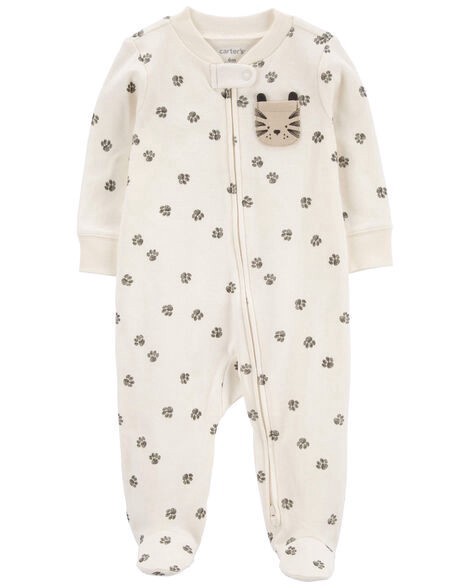 Carter's Baby Paw Print 2-Way Zip Cotton Sleep & Play Ivory 6M